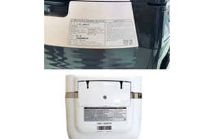 제품 좌측(냉이온정수기), 뒷면(상온이온정수기), 제품커버 안쪽(반뼘정수기)에 스티커 부착되어 있습니다.